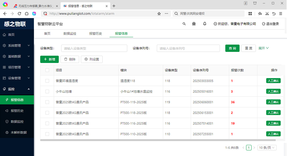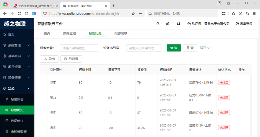 五 、感之物聯(lián)-設(shè)備報(bào)警及確認(rèn)日志